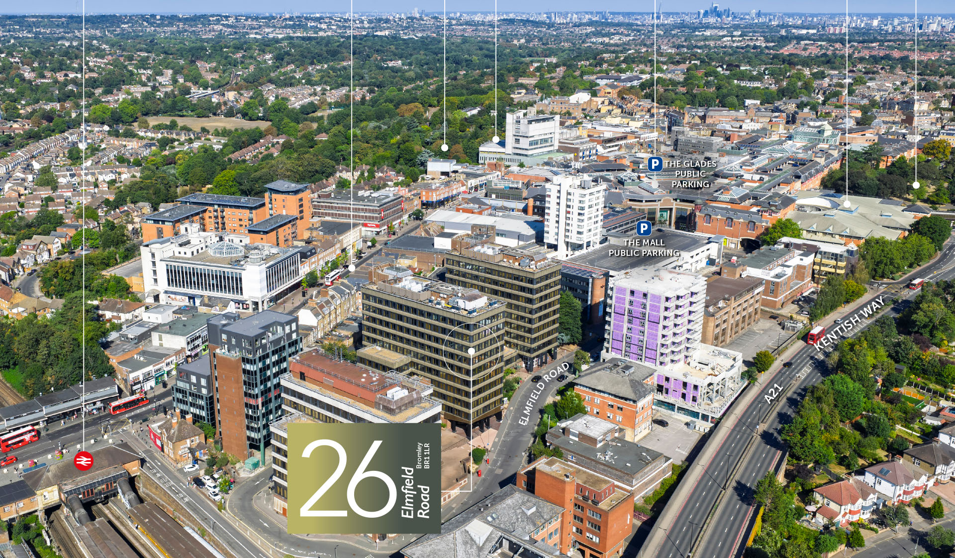26 Elmfield Road is a landmark office building in Bromley offering 23,690 sq ft of fully refurbished Grade A accommodation with excellent views. The refurbishment delivers a prestigious expanded reception area with new facade, creating a powerful sense of arrival.