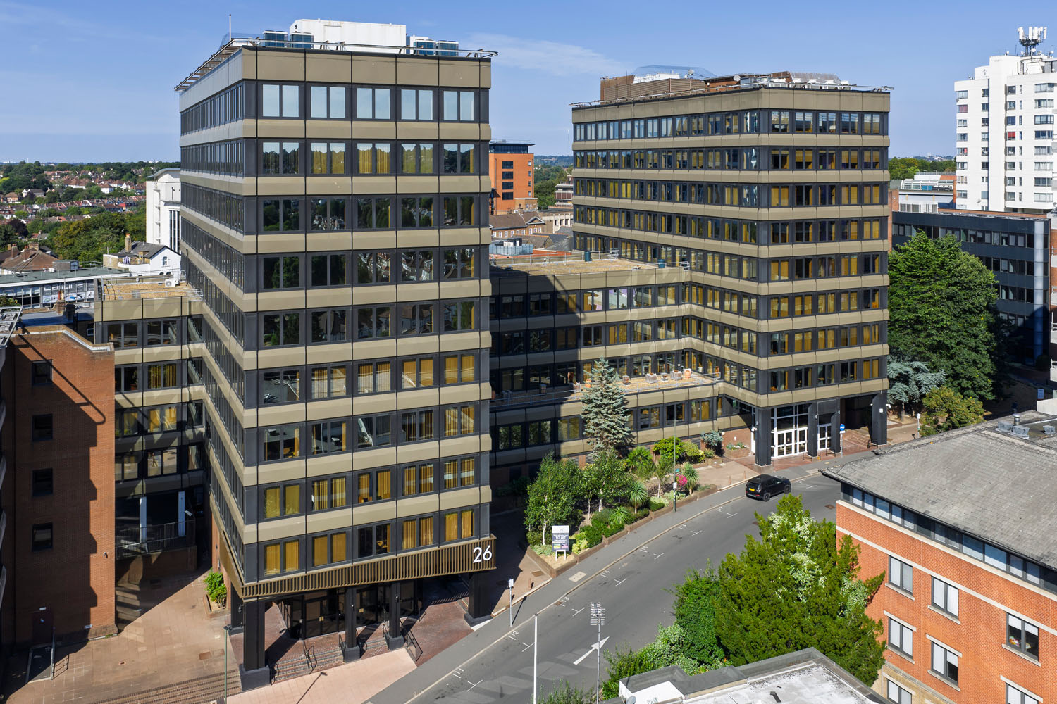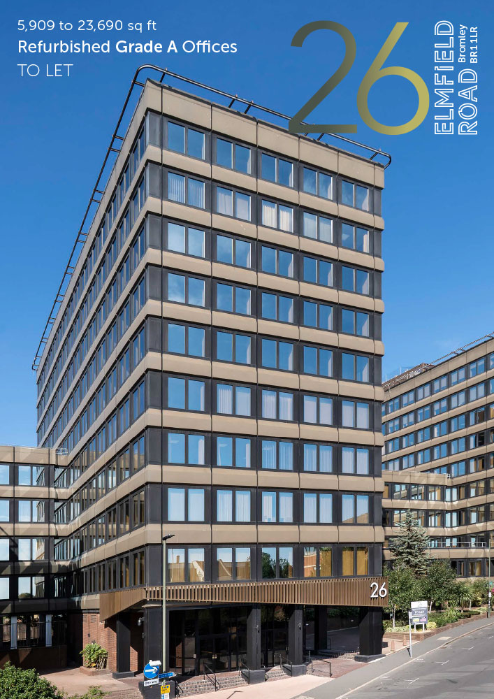 26 Elmfield Road is a landmark office building in Bromley offering 23,690 sq ft of fully refurbished Grade A accommodation with excellent views. The refurbishment delivers a prestigious expanded reception area with new facade, creating a powerful sense of arrival.